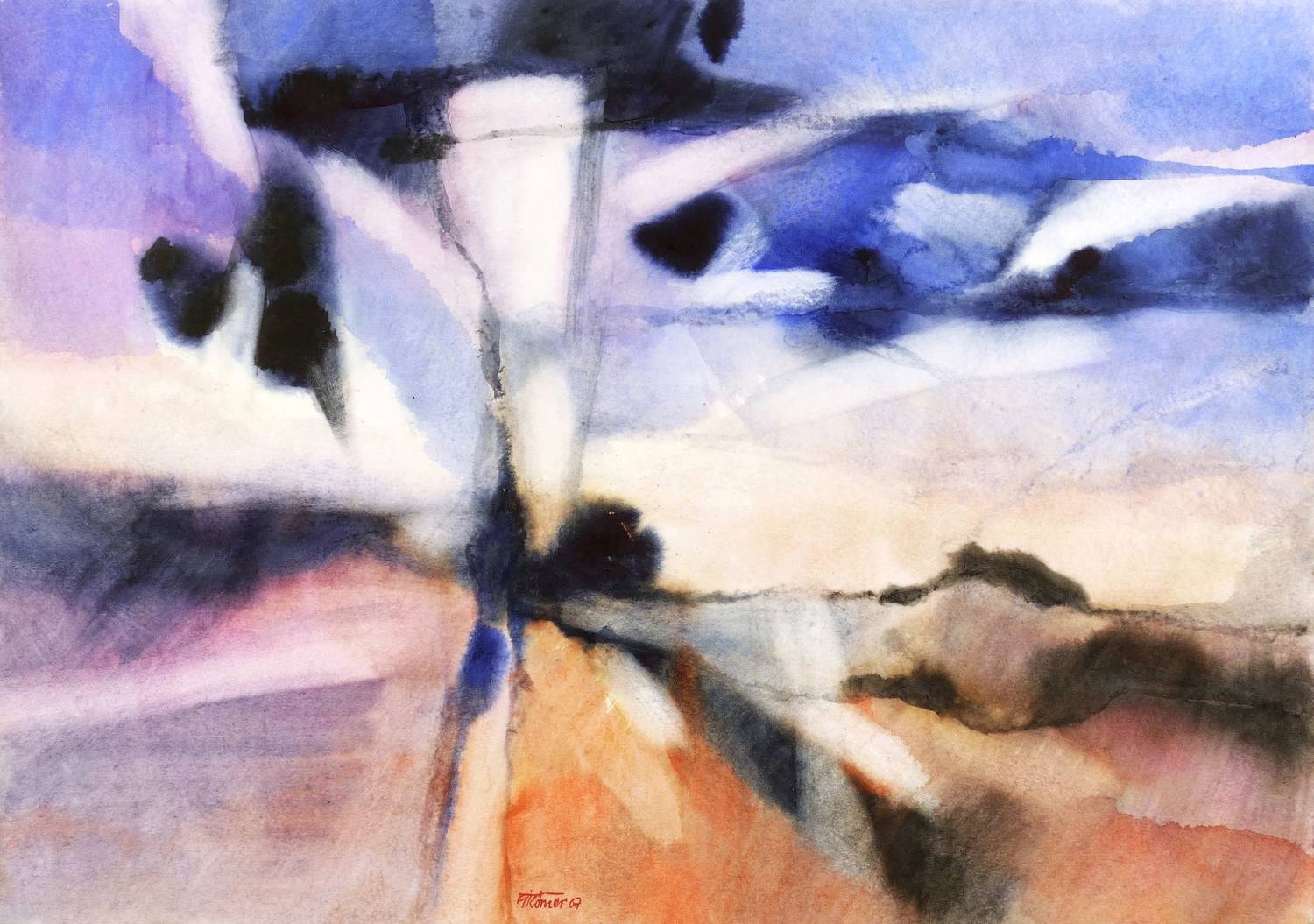 Mit Regenwolken Aquarell auf hellem, wolkigem Büttenkarton, 2007 Blaue Stunde Mischtechnik / Aquarell & Deckfarbenauf schwerem Lana-Büttenkarton, 2009